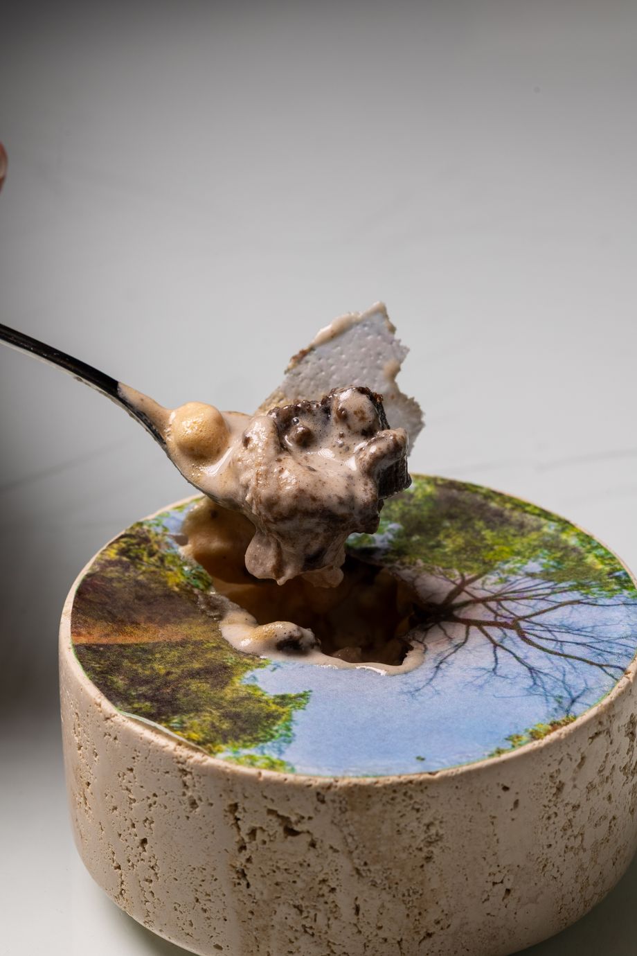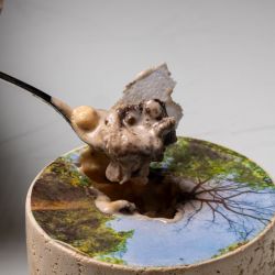 The journey then moved into more intense territories with the seasonal catch smoked in Arabic spices, served with lacto-fermented candia, orejero hummus, and a broth of local sesame, balanced with a Calatayud 2022 that emphasized its spiced character.