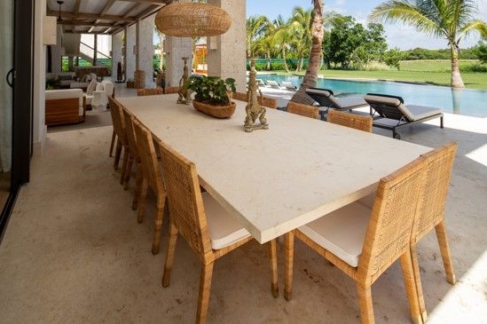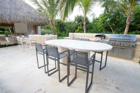 Only minutes 5 min. away from the International Puntacana Airport, 2 minutes from our VIP Terminal, 5 min. from white sand beaches, 3 min. from the golf courses and exceptional restaurants and spa facilities! Picture this spacious terrace all prepared for the perfect Barbeque right next to the pool!